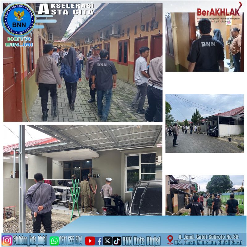 Binjai, sumatraterkini.id- Tim gabungan terdiri dari TNI-Polri bersama BNN Kota Binjai melakukan KRN (Kampung Rawan Narkoba) di Kos-Kosan JL.Tamtama, Kelurahan Satria, Kecamatan Binjai Kota, Kota Binjai-Perumahan Deli Sitorus Kecamatan Binjai Selatan, Rabu (26/02/2025) Pukul 14:00 Wib.
